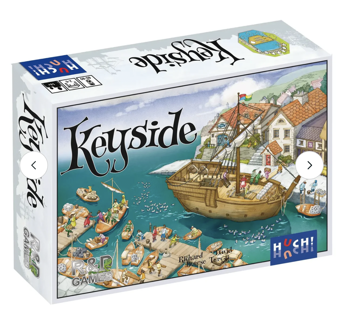 Und je mehr Arbeiter, desto mehr Punkte. Und die meisten Punkte gewinnen! Keyside vereint Würfelmanipulation, Arbeiterinsatz, Aktionsfolge und Sets sammeln zu einem frischen, spannenden Kennerspiel.