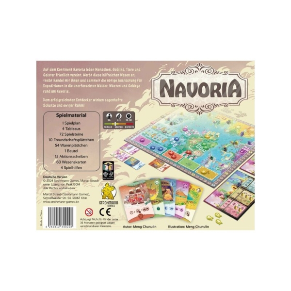 Kurzinfo: Auf Navoria leben Menschen, Goblins, Tiere und Geister friedlich vereint. Werbt diese hilfreichen Wesen an, treibt Handel mit ihnen und sammelt die nötige Ausrüstung für Expeditionen in die unerforschten Wälder, Wüsten und Gebirge rund um Navoria. Dem erfolgreichsten Entdecker winken sagenhafte Schätze und ewiger Ruhm.